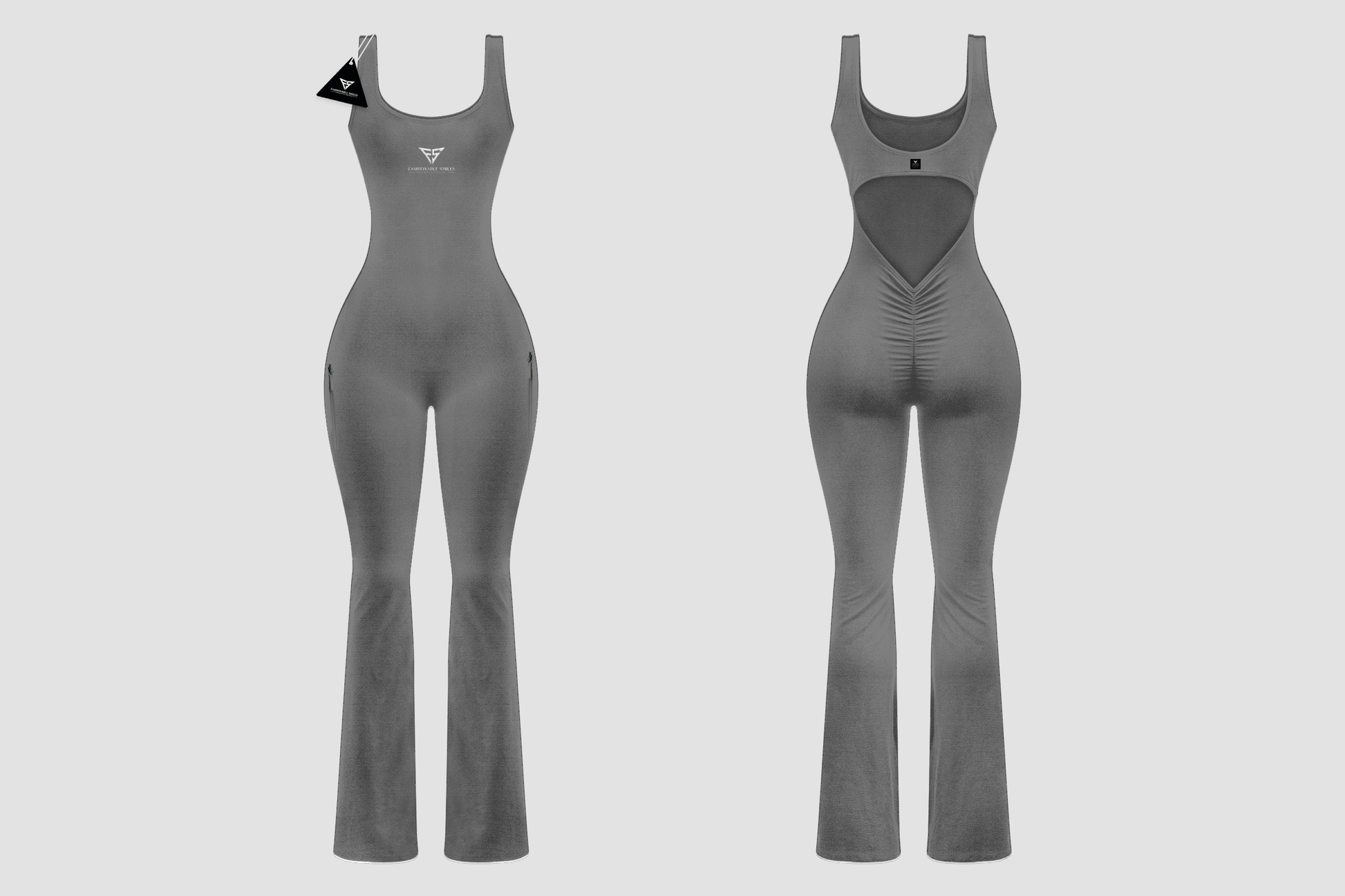 Classic Beauty Back Long Grey Jumpsuit